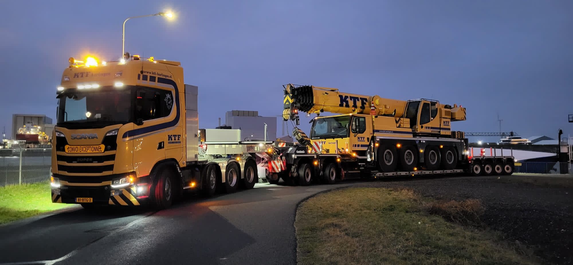De 2-bed-4 Euro dieplader van KTF Harlingen voor zwaar en speciaal transport, deze Nooteboom Euro dieplader heeft een losse dolly en een afneembare nek. Op deze afbeelding getrokken door een 8×4 Scania S660 trekker.