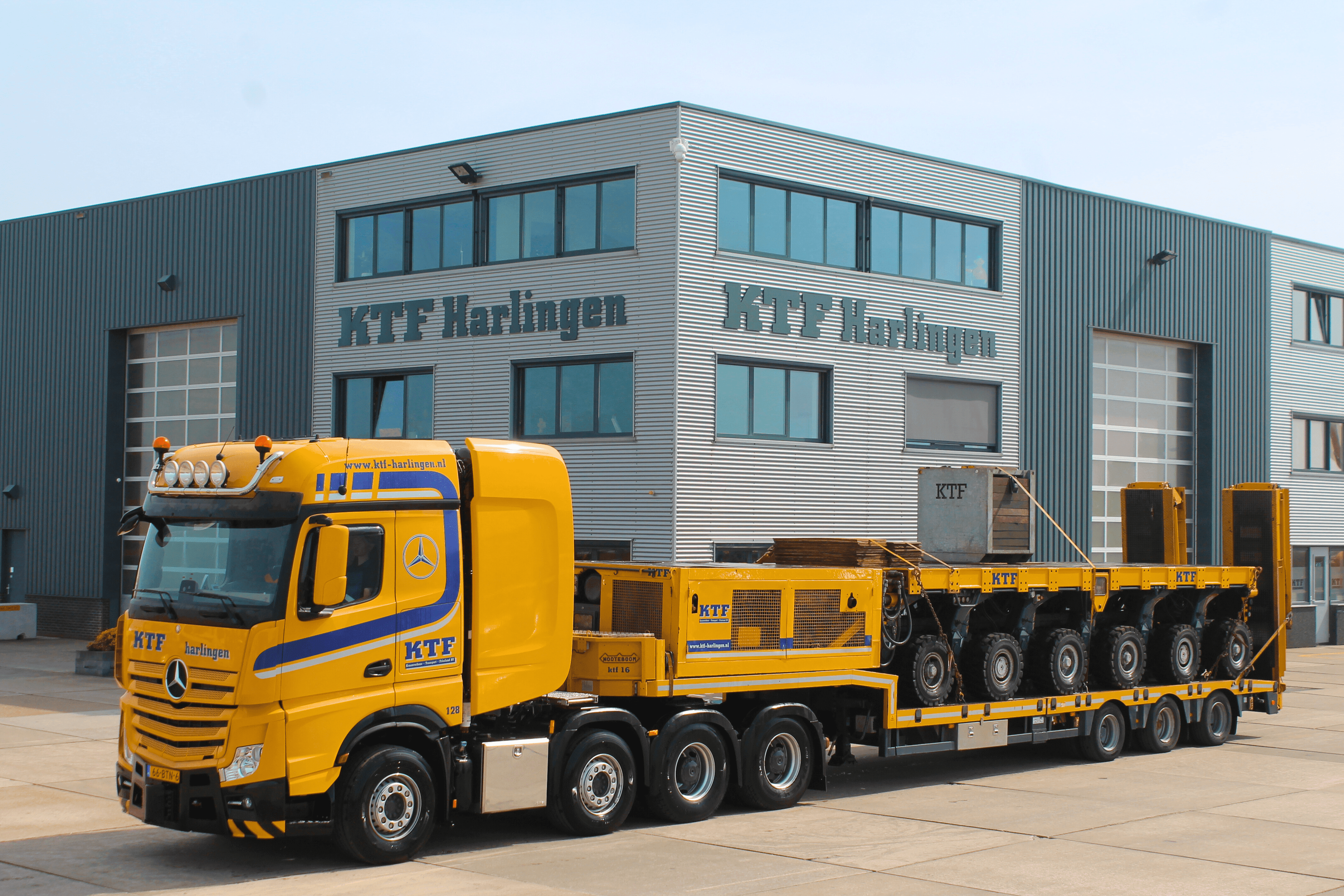 KTF Harlingen beschikt over diverse semi dieplader trailers welke geschikt zijn voor speciaal transport. Met de lage laadvloer heeft deze trailer de mogelijkheid om hogere vrachten te laden, zoals staalconstructies, units en zoals op deze afbeelding: onze eigen SPMT’s.